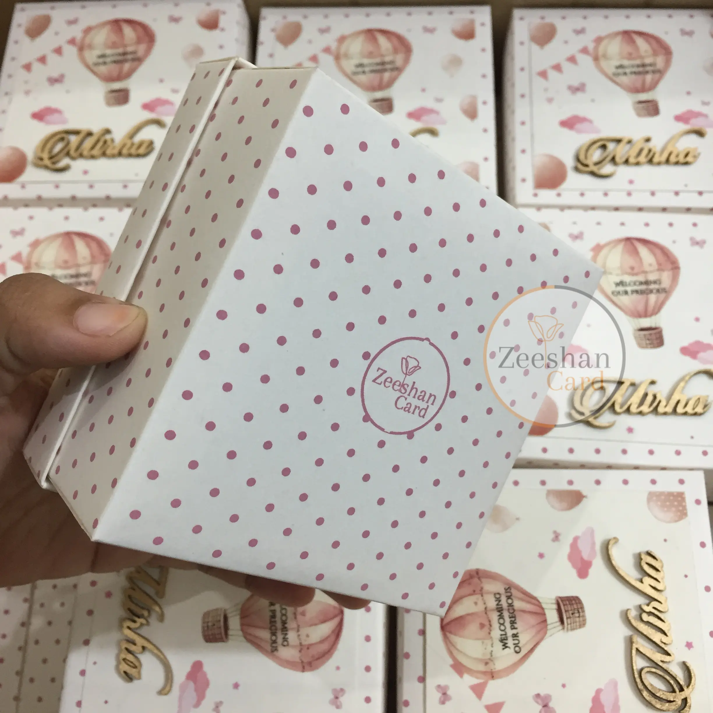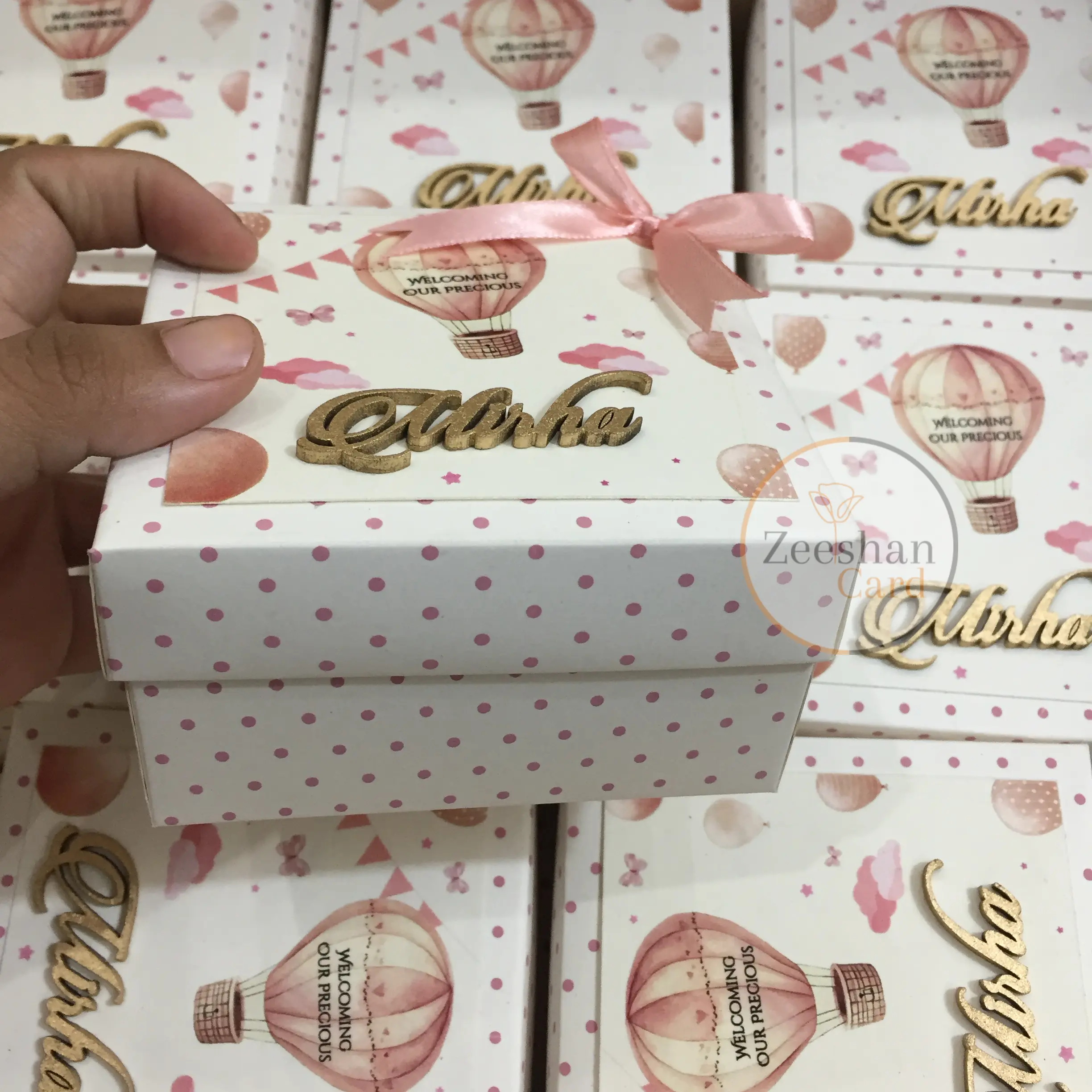 All your wedding needs including Card Board Baby Girl Box with Laser Cut Name , Bid box, sweet, favor, Tin, Baby announcement boxes and more…