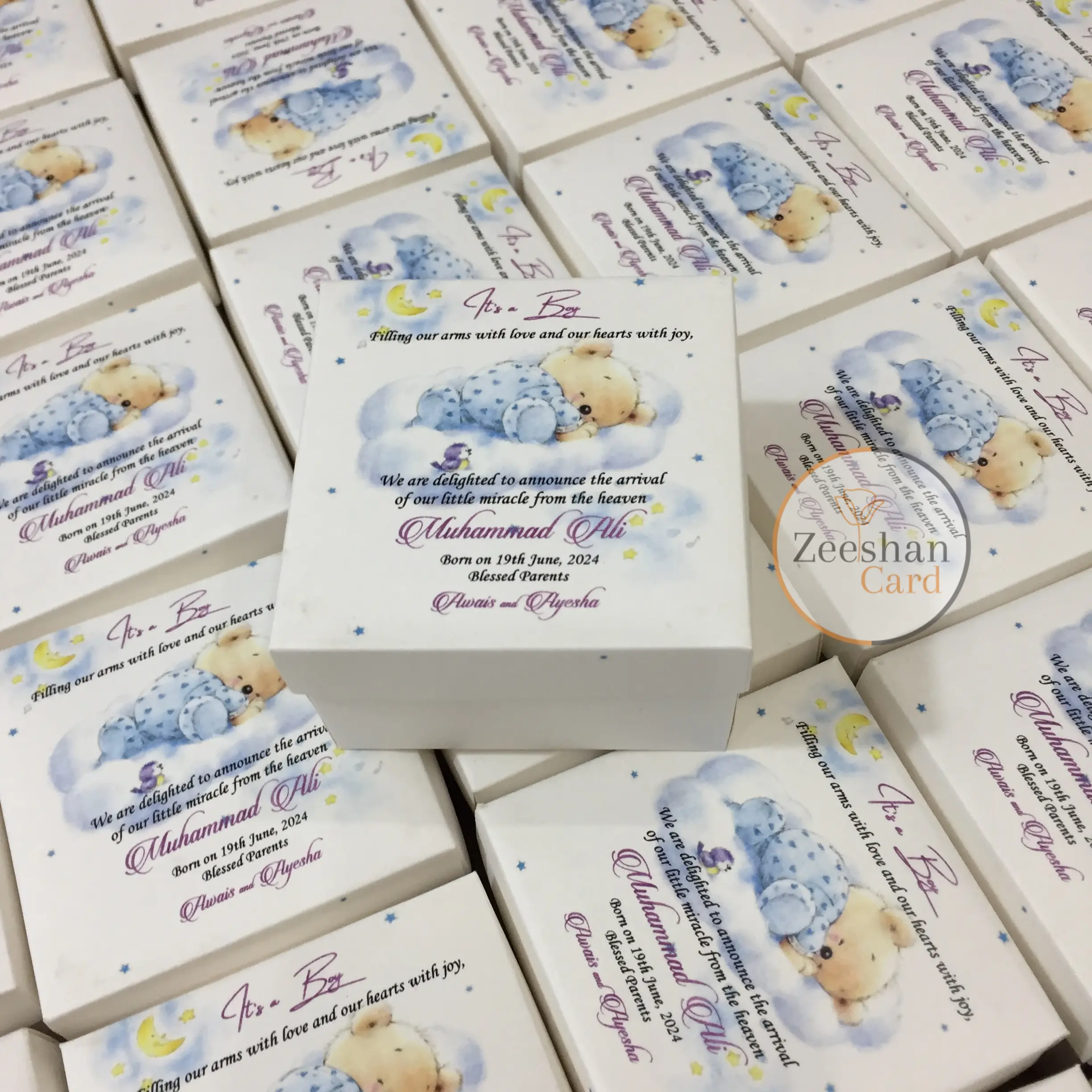 Beautifully crafted baby announcement boxes