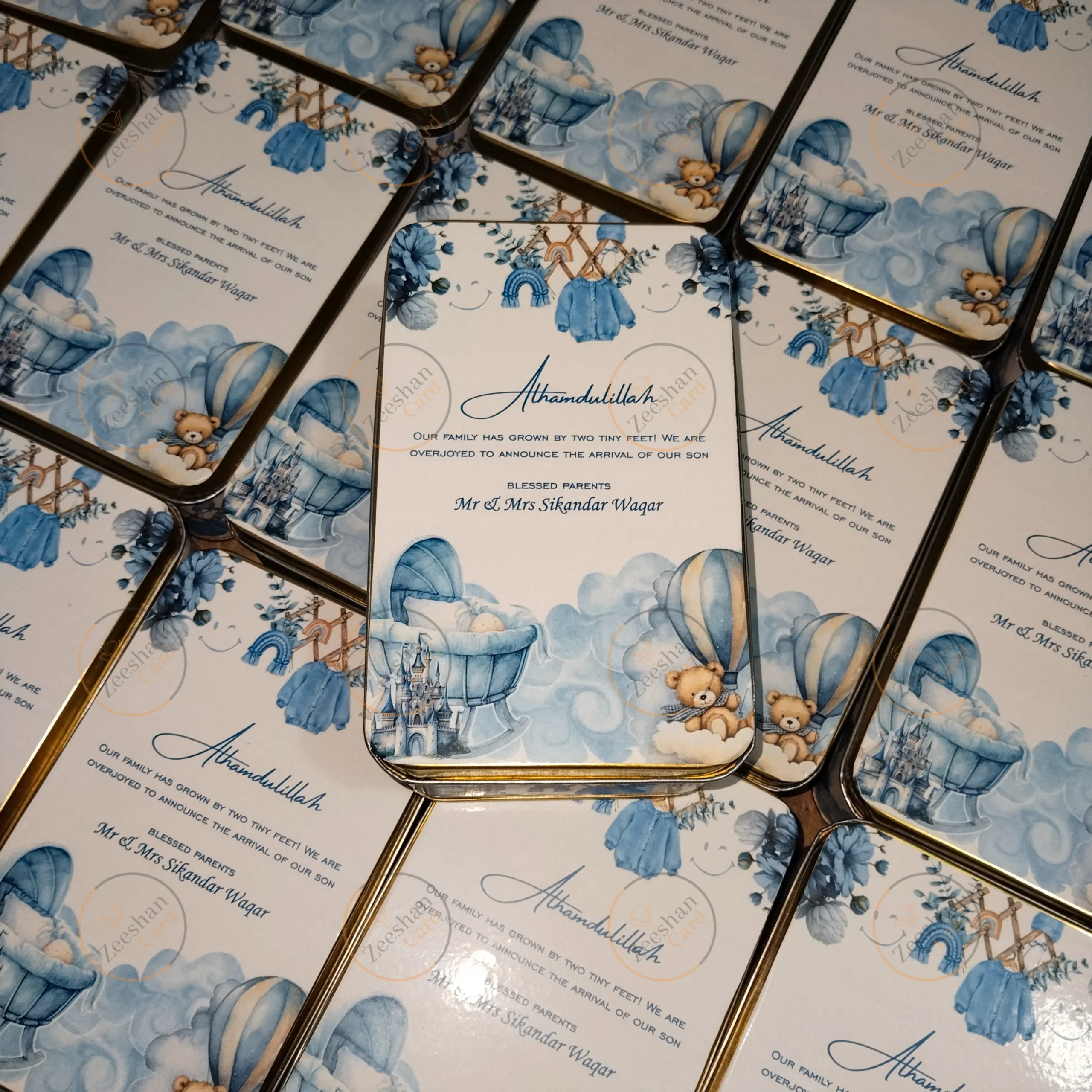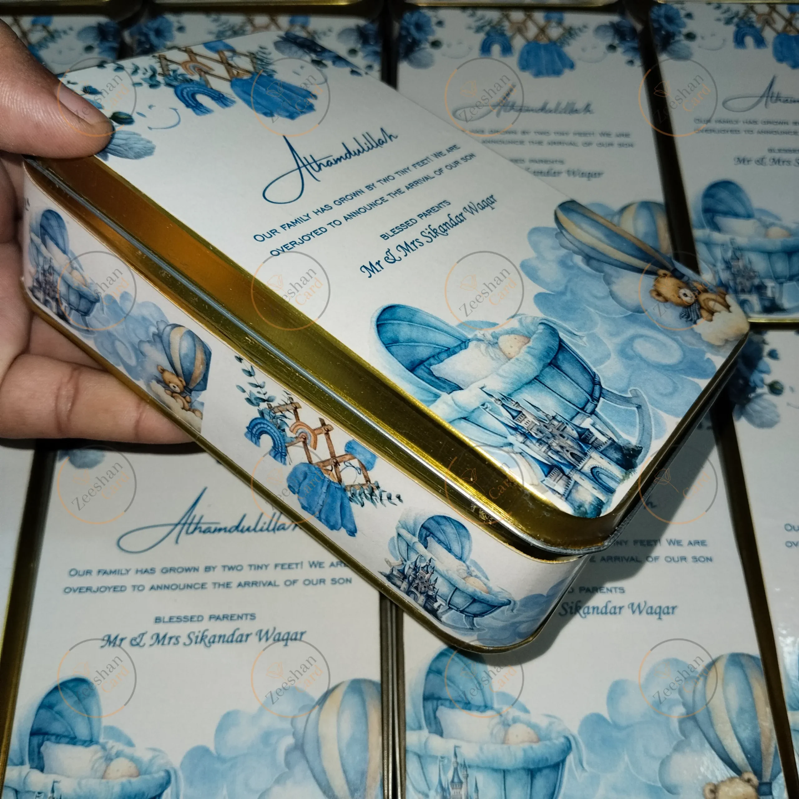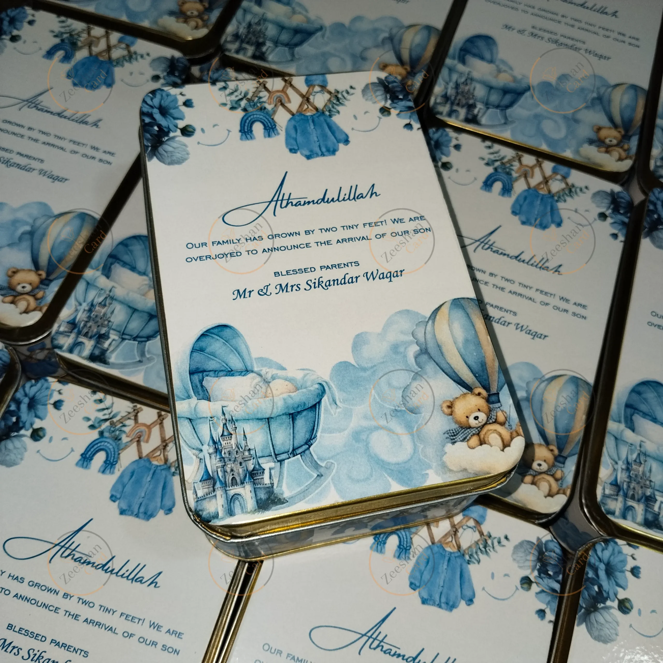 All your wedding needed Half Kg Tin Box For Baby Boy, Baby announcement boxes and more…