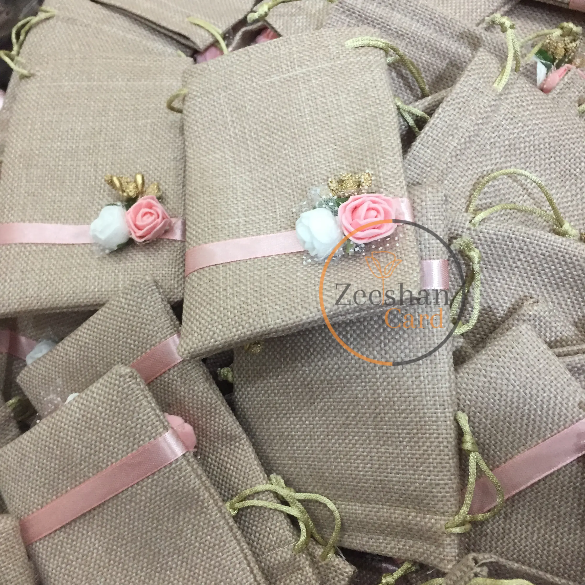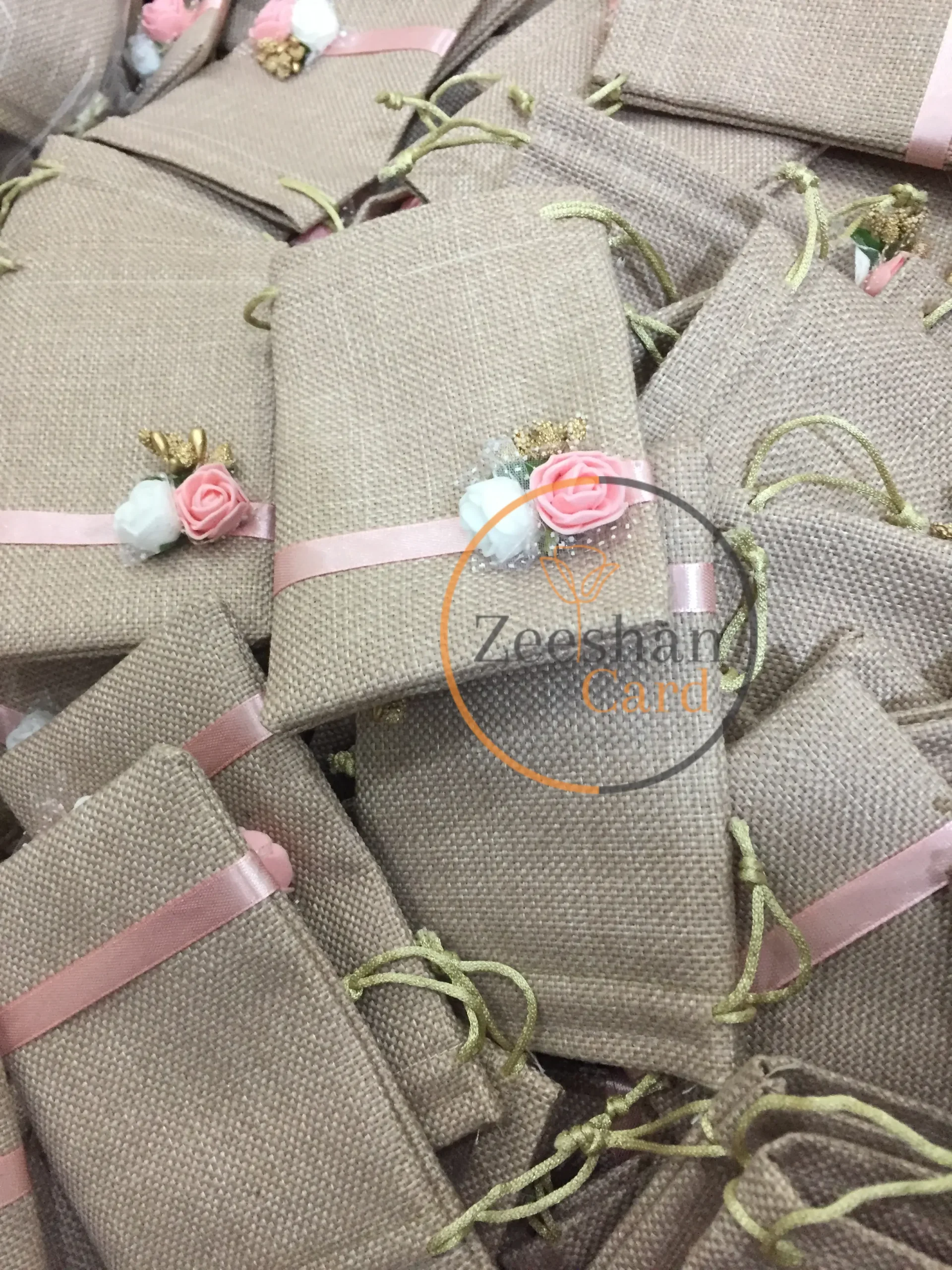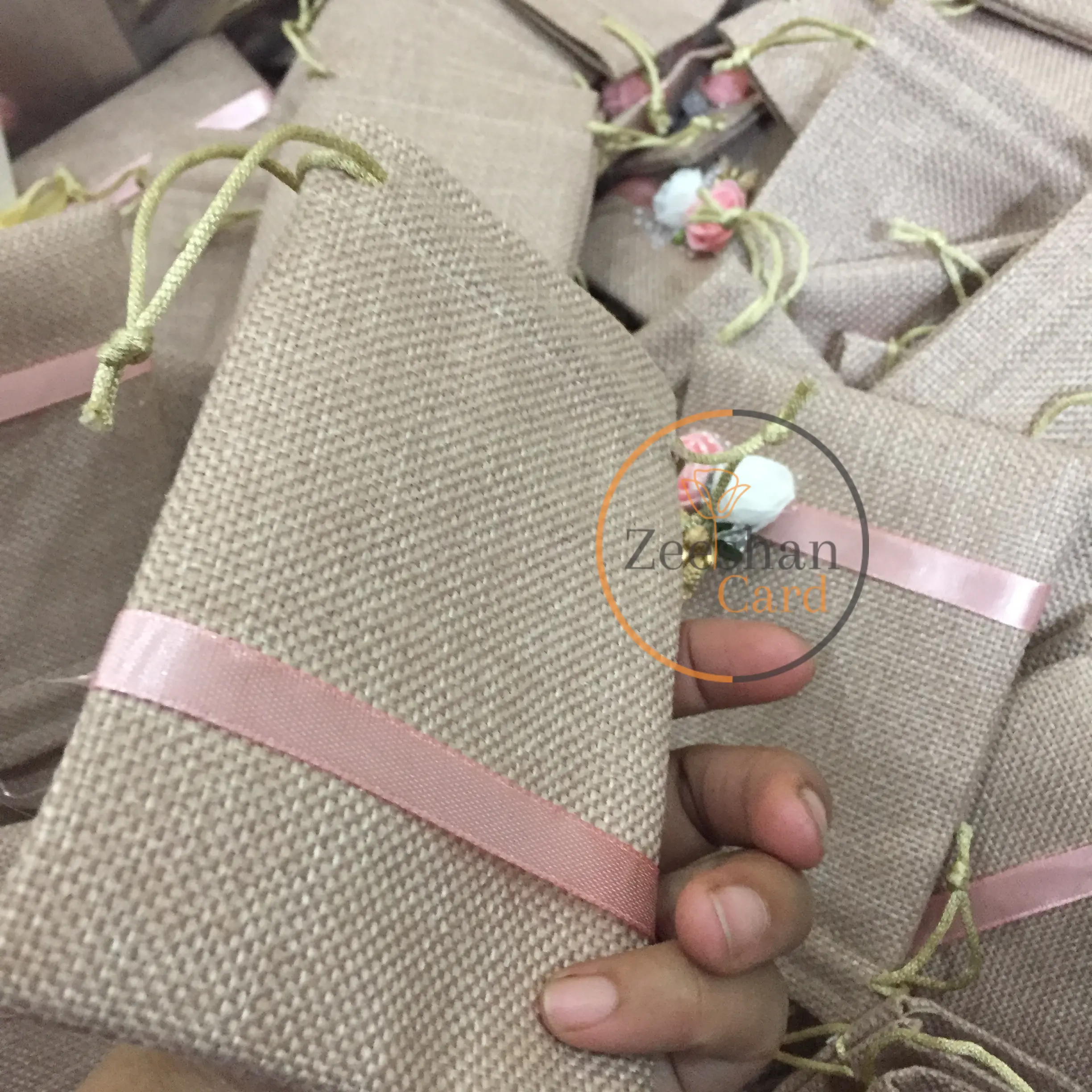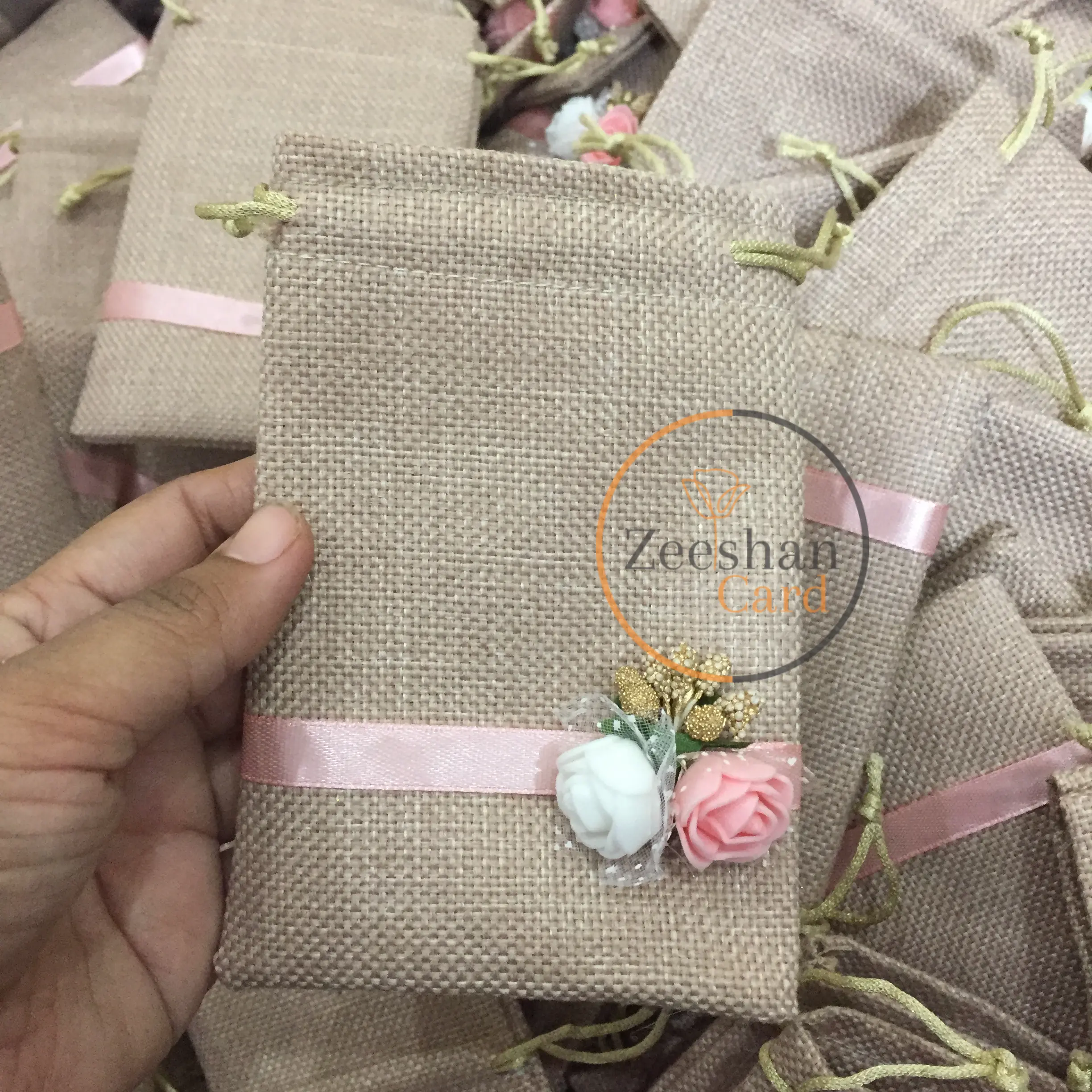 Home Shop Bid Boxes / Favor Boxes Jute Pouch With Flowers And Ribbon