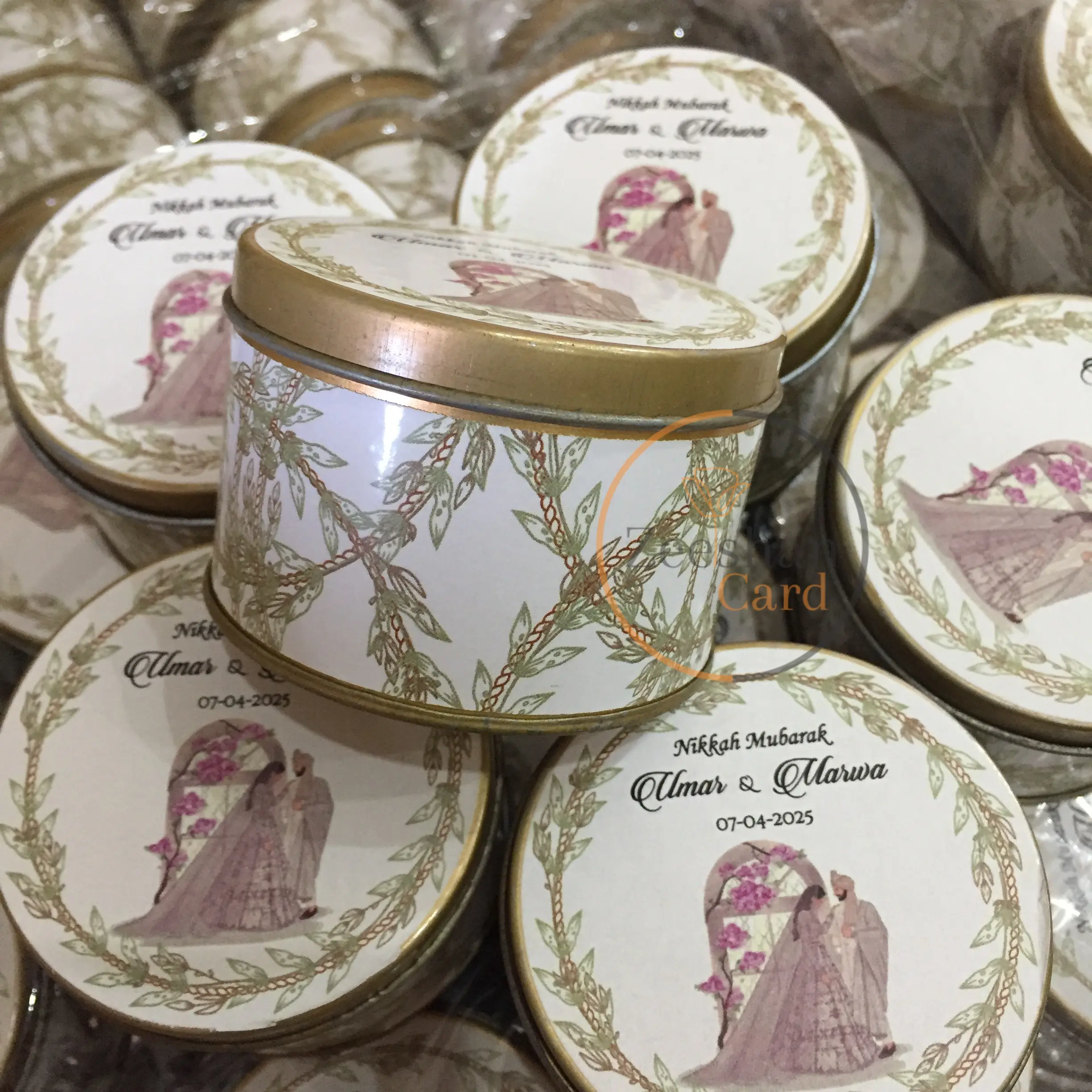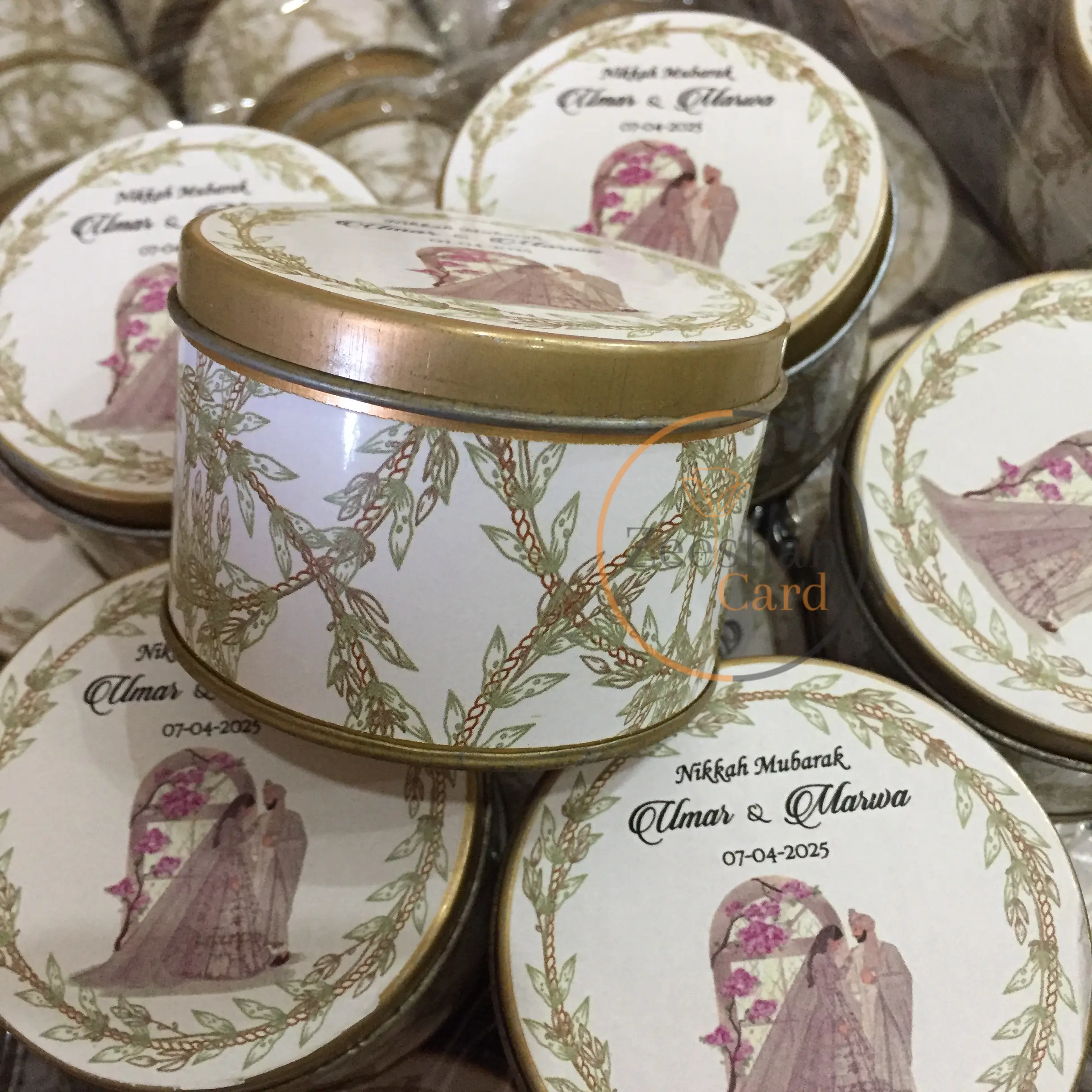Floral Design Tin Now With Couple Printed
