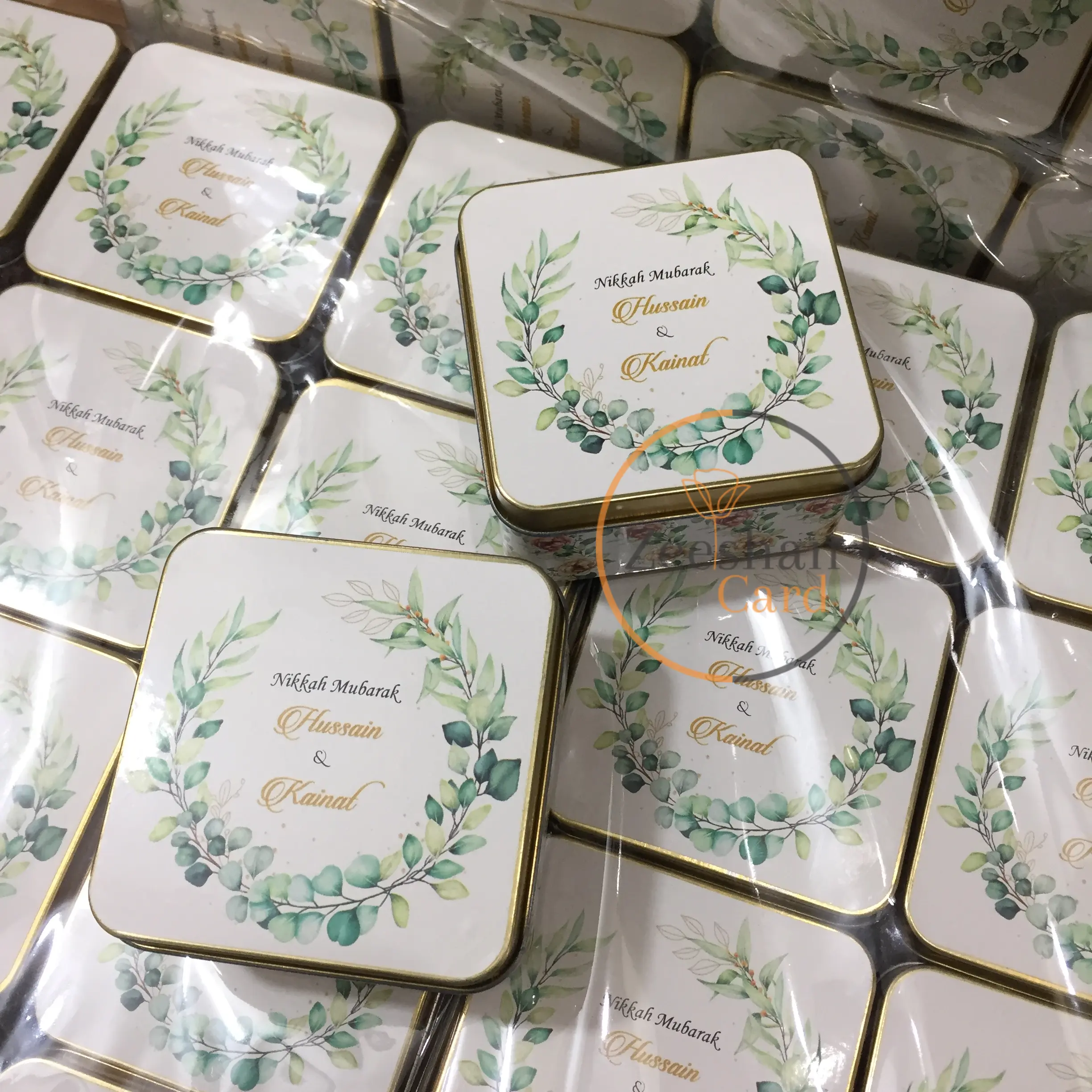 All your wedding needed Green Flower Square Tin Design, Baby announcement boxes and more…