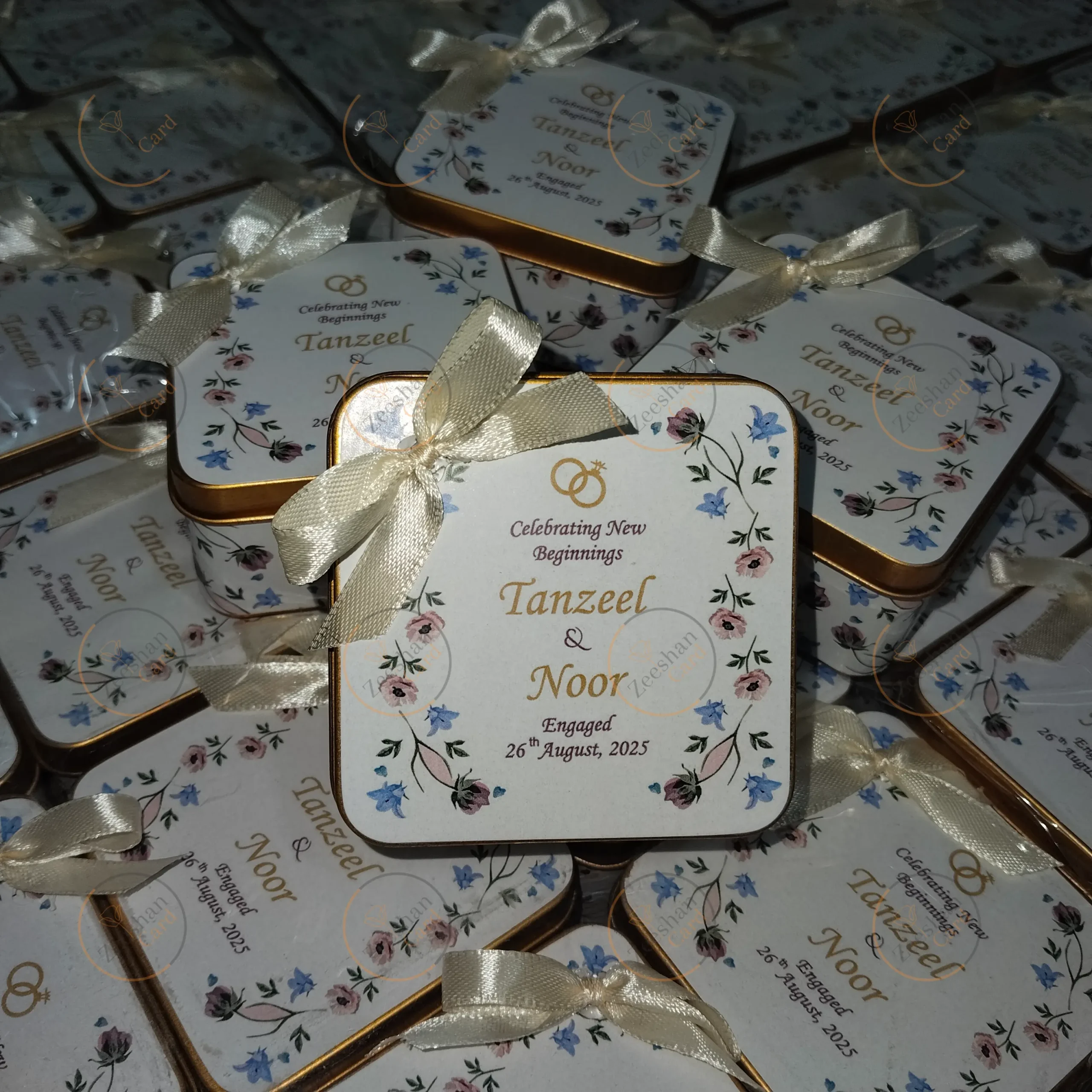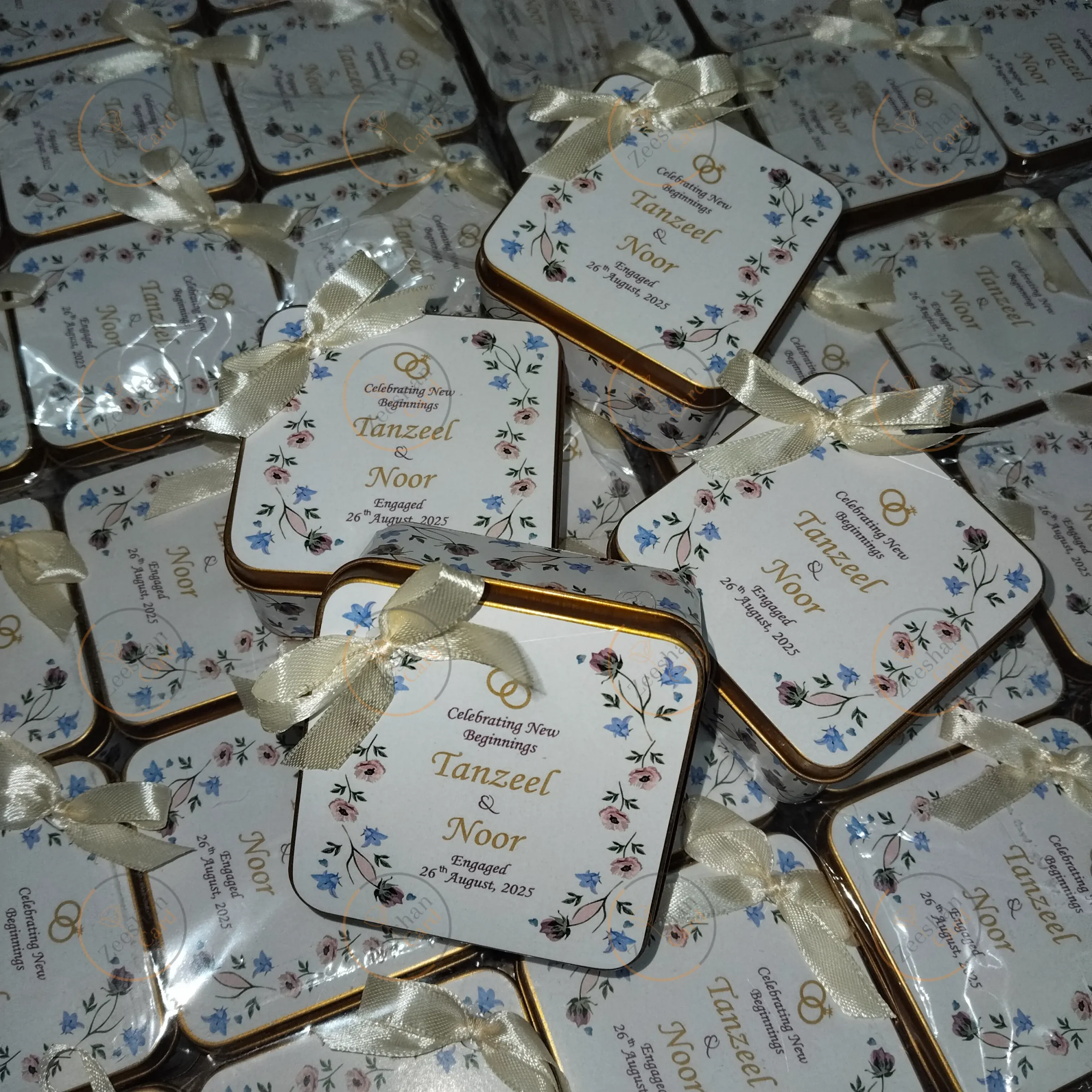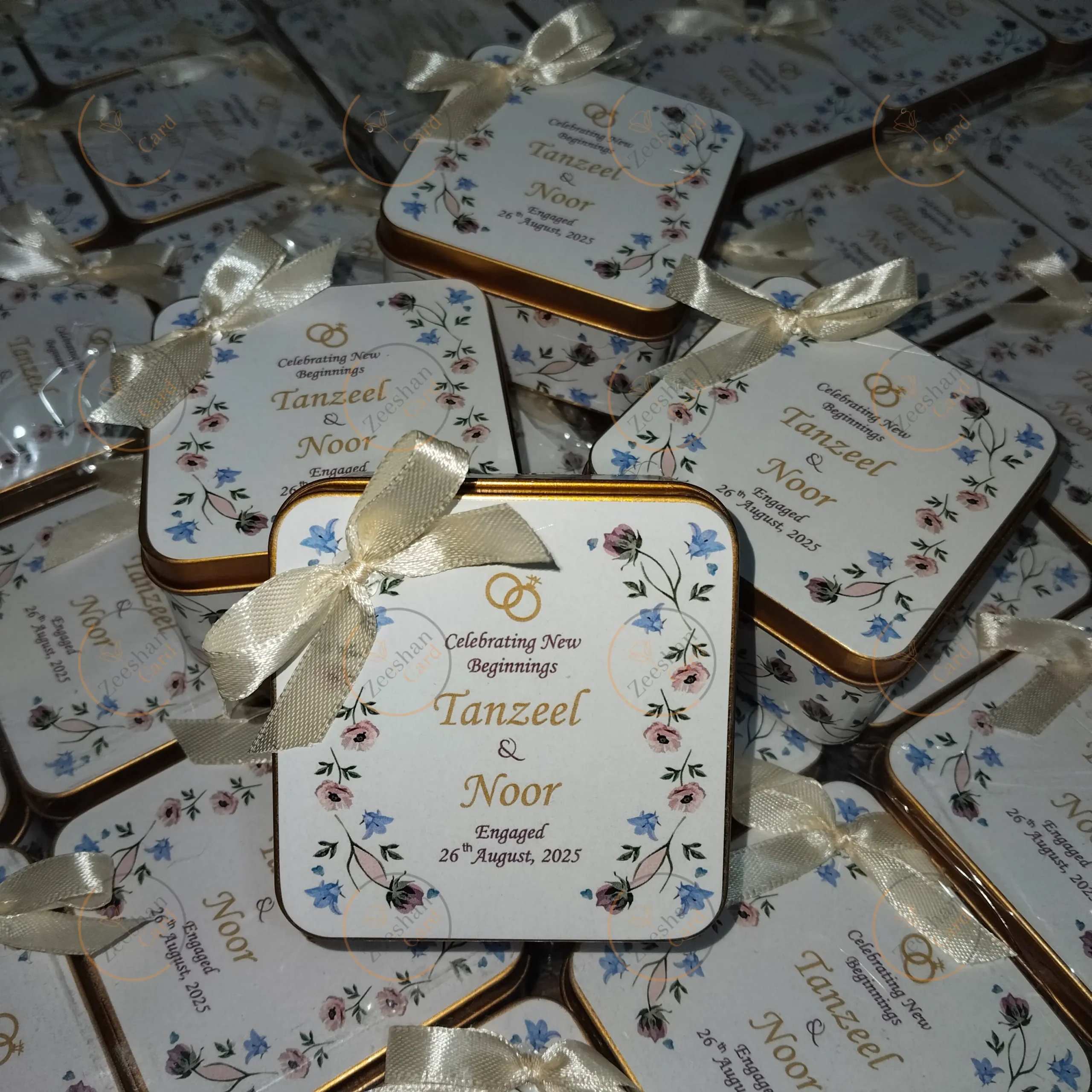 All your wedding needed New Flowers Printed Tin Box With Bow , Baby announcement boxes and more…