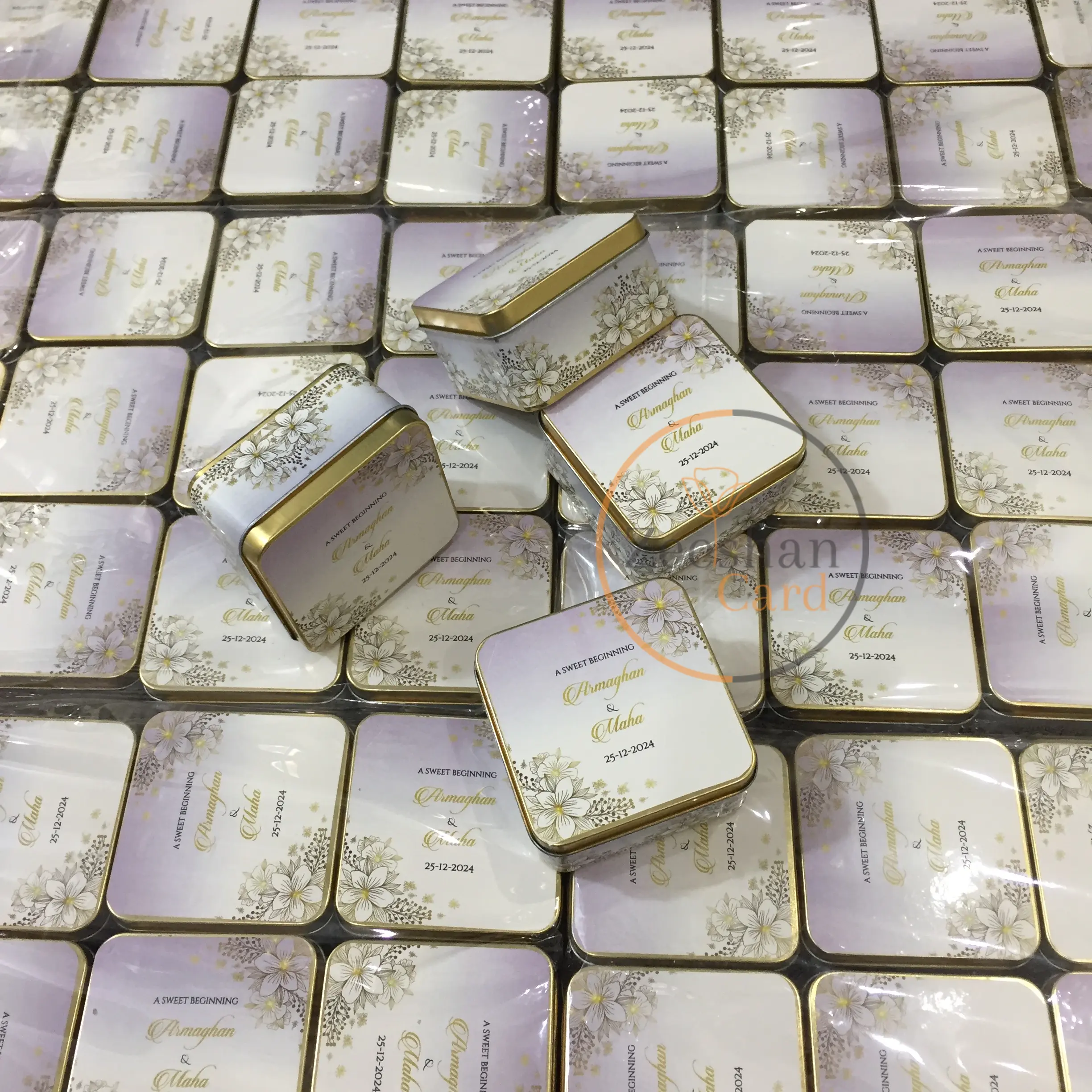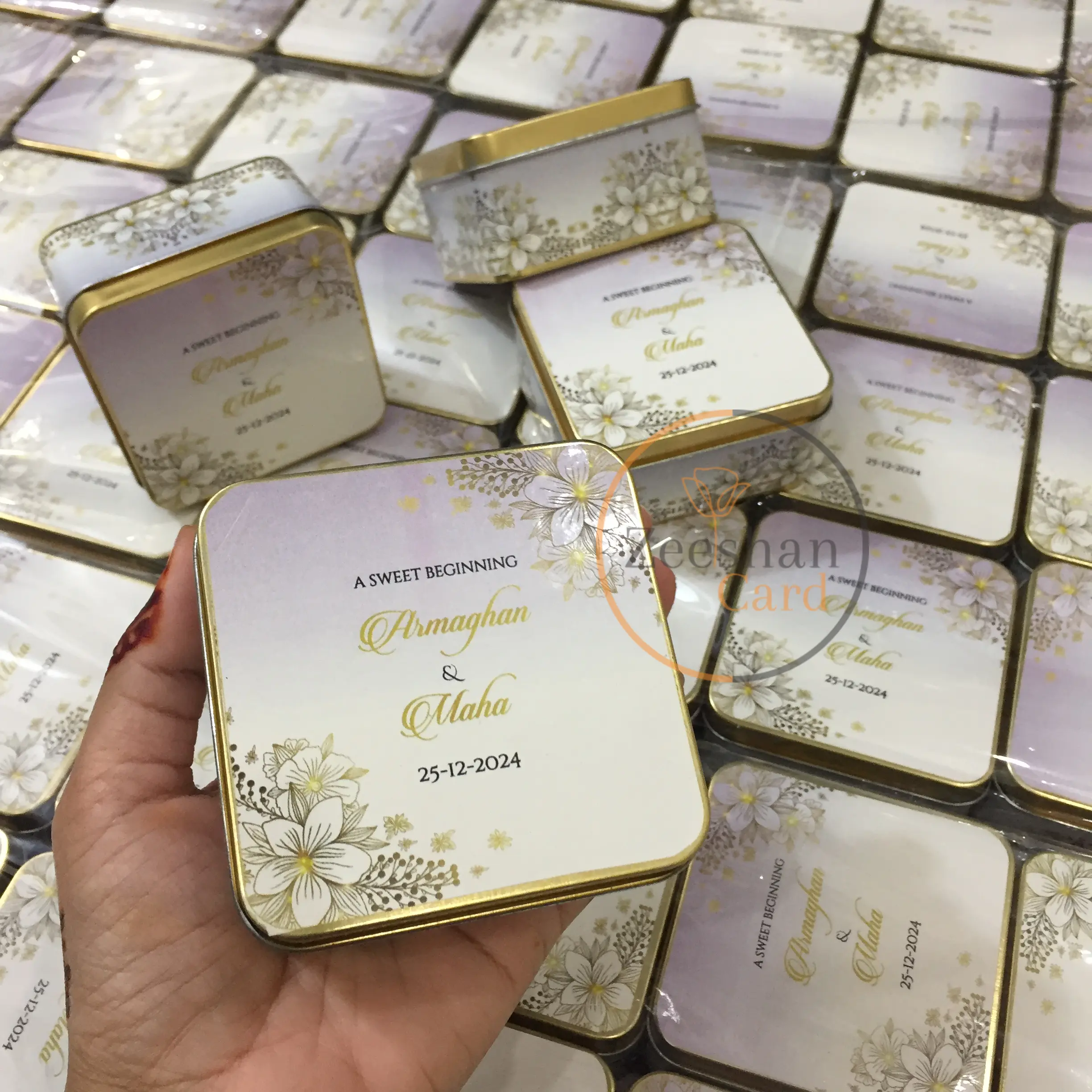 All your wedding needs including Special Square Tin Bid Box, Baby announcement boxes and more…
